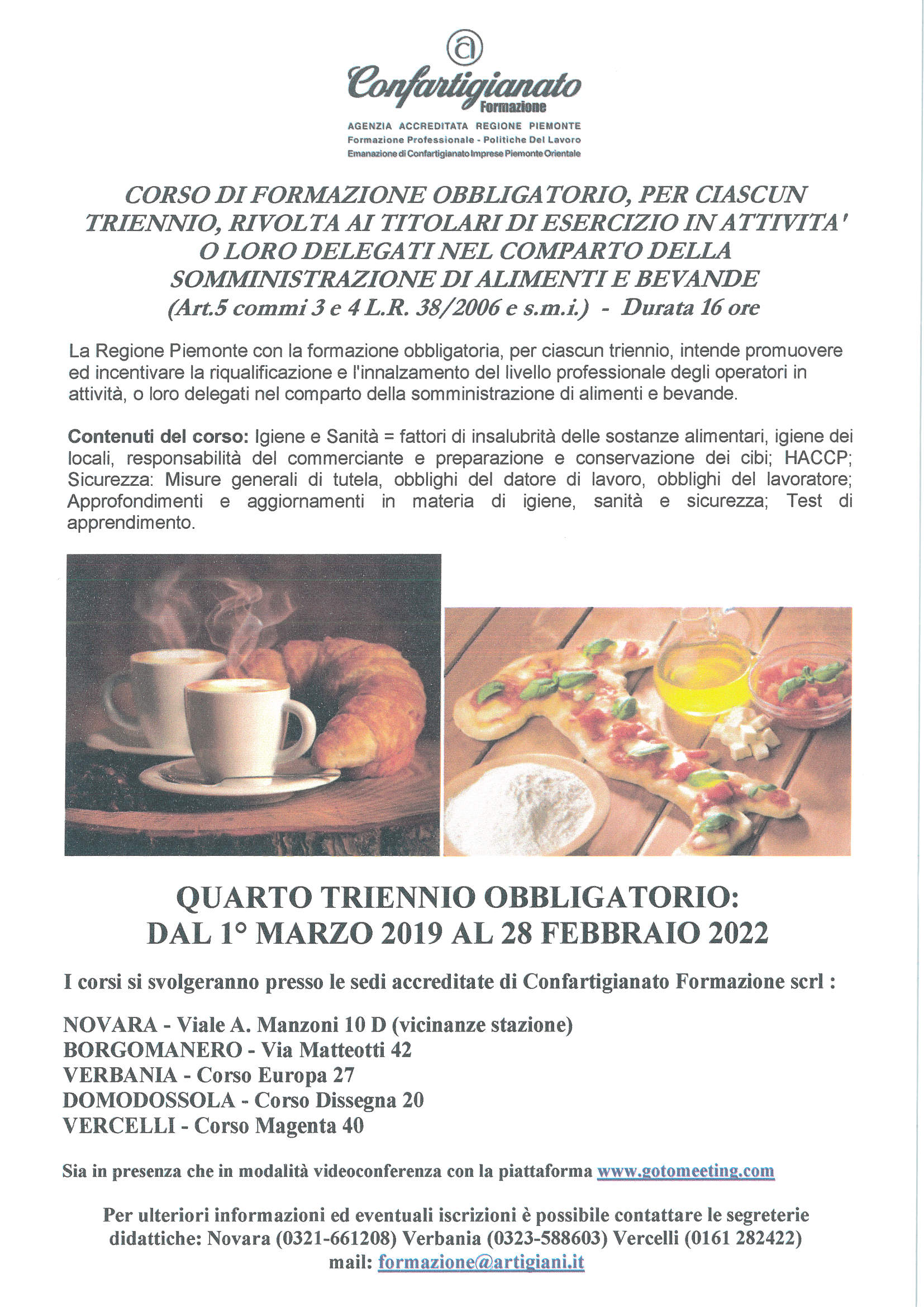 Confartigianato - corso di formazione obbligatorio per titolari esercizi comparto somministrazione alimenti e bevande Scuola / Istruzione Sabato, 13 Marzo 2021